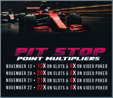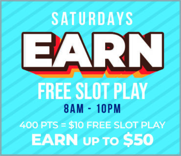 Receive up to 50% off when paying with your earned comps. Must earn 25 slot points. Visit promotional kiosk to print voucher.